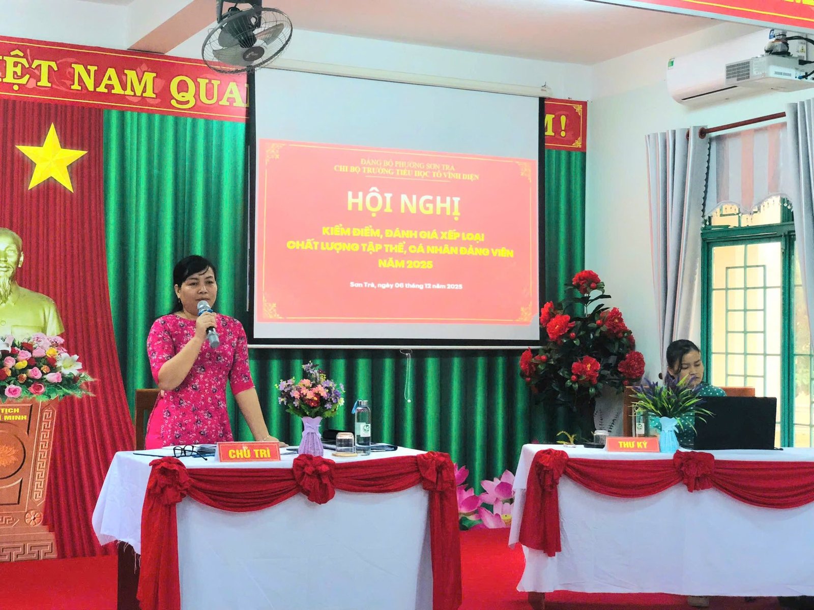 Sáng 6-12, Chi bộ Trường Tiểu học Tô Vĩnh Diện tổ chức Hội nghị kiểm điểm, đánh giá xếp loại chất lượng tập thể và cá nhân đảng viên năm 2025. Về dự theo dõi và chỉ đạo Hội nghị có Đồng chí Võ Thị Phương – Đảng ủy viên, Trưởng phòng VHXH phường Sơn Trà. Hội nghị được tiến hành nghiêm túc, đúng quy trình, đảm bảo dân chủ, khách quan theo quy định của Đảng.
